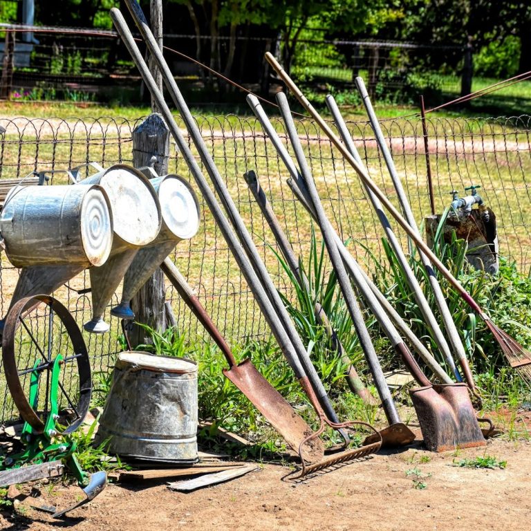 - Handwerkzeug: Heckenscheren, Rechen, Schaufeln, Besen oder Astscheren.